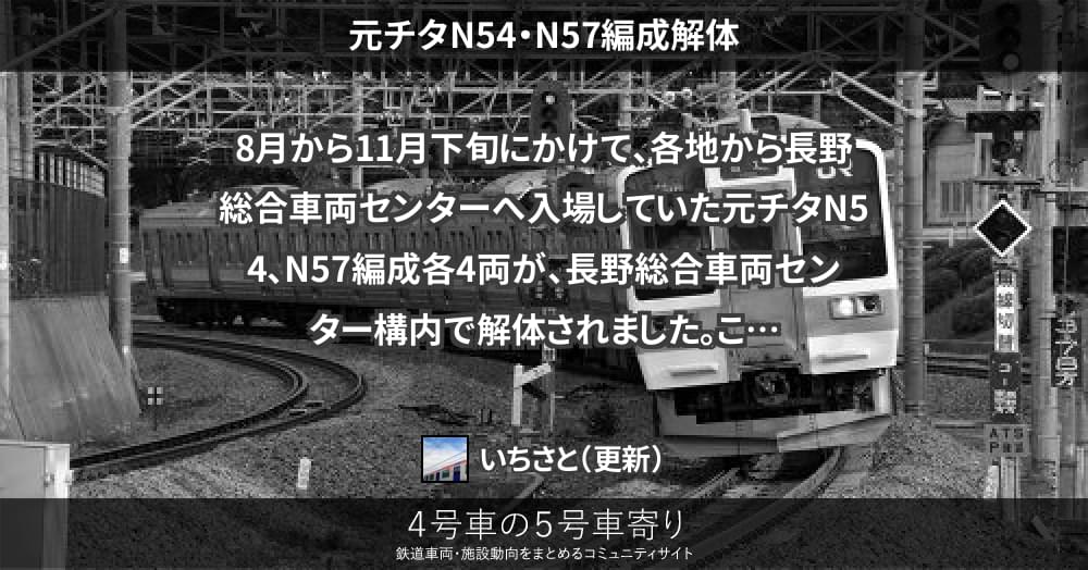 8月から11月下旬にかけて、各地から長野総合車両センターへ入場していた元チタN54、N57編成各4両が、長野総合車両センター構内で解体されました。