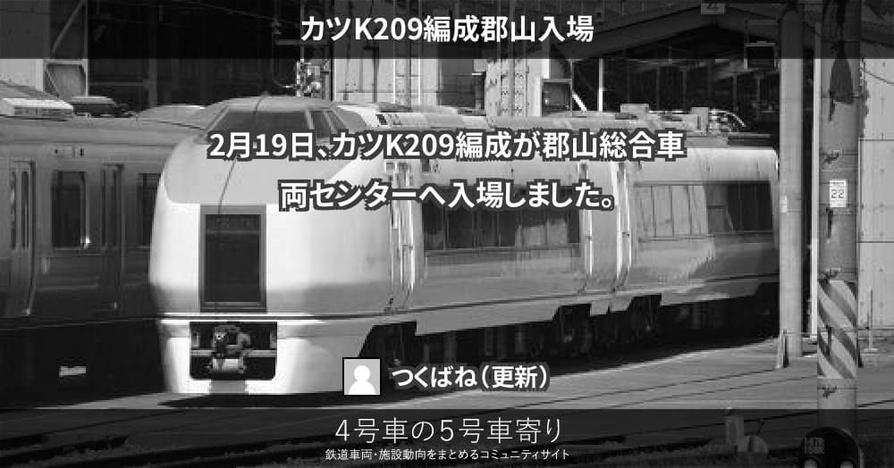 651系 ページ目次 カツK209編成郡山入場 更新コンテンツ サイト投稿写真 2014/02/19 カツK209編成郡山入場 2月19日、カツK209編成が郡山総合車両センターへ入場しました。 更新コンテンツ 404 Not Found 上記コンテンツ傘下のページも含みます。 サイト投稿写真 投稿画像がありません。651系/E653系/E657系グループのアップローダーへ投稿頂いた写真は、こちらでご紹介致します。
