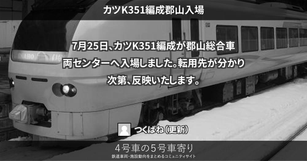 7月25日、カツK351編成が郡山総合車両センターへ入場しました。転用先が分かり次第、反映いたします。