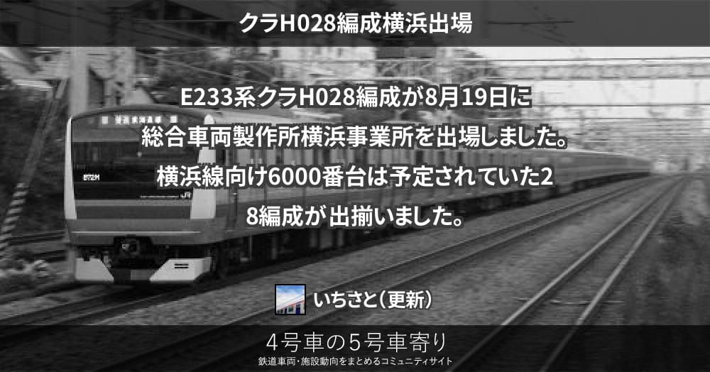 E233系クラH028編成が8月19日に総合車両製作所横浜事業所を出場しました。