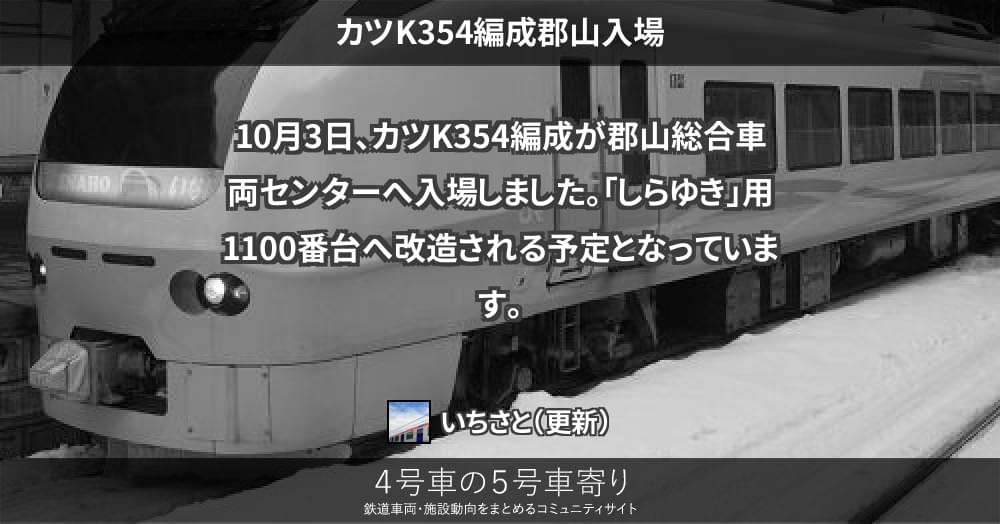 10月3日、カツK354編成が郡山総合車両センターへ入場しました。「しらゆき」用1100番台へ改造される予定となっています。