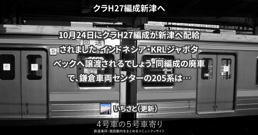 10月24日にクラH27編成が新津へ配給されました。インドネシア・KRLジャボタベックへ譲渡されるでしょう。