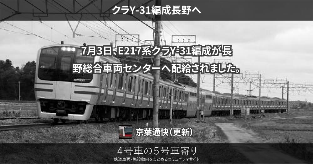7月3日、E217系クラY-31編成が長野総合車両センターへ配給されました。