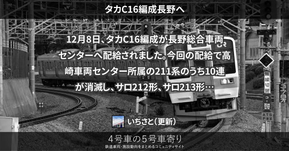 12月8日、タカC16編成が長野総合車両センターへ配給されました。