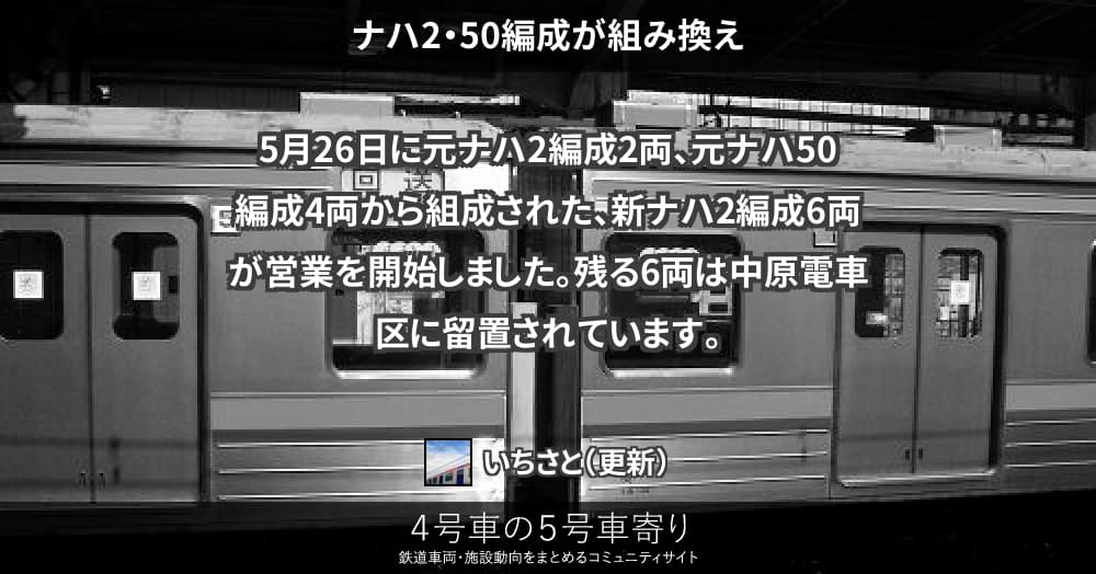 5月26日に元ナハ2編成2両、元ナハ50編成4両から組成された、新ナハ2編成6両が営業を開始しました。