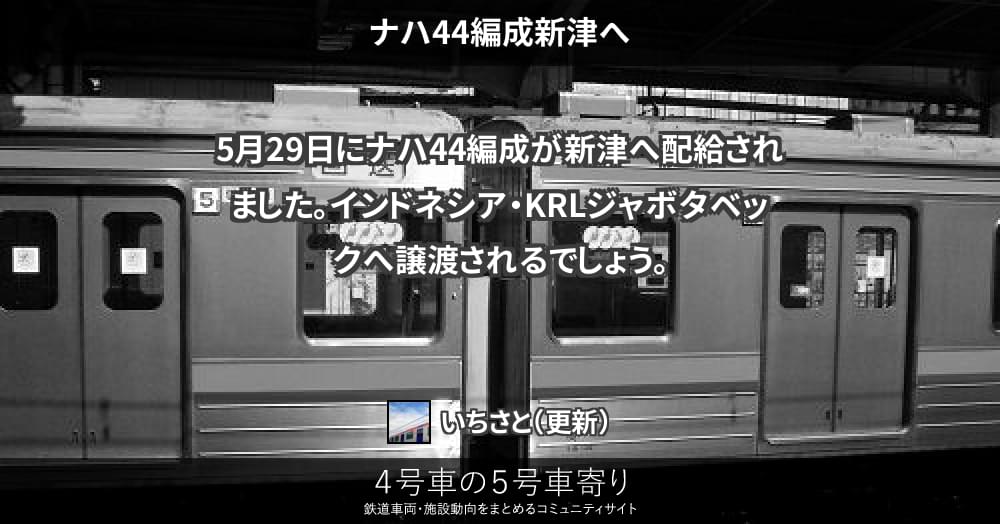 5月29日にナハ44編成が新津へ配給されました。インドネシア・KRLジャボタベックへ譲渡されるでしょう。