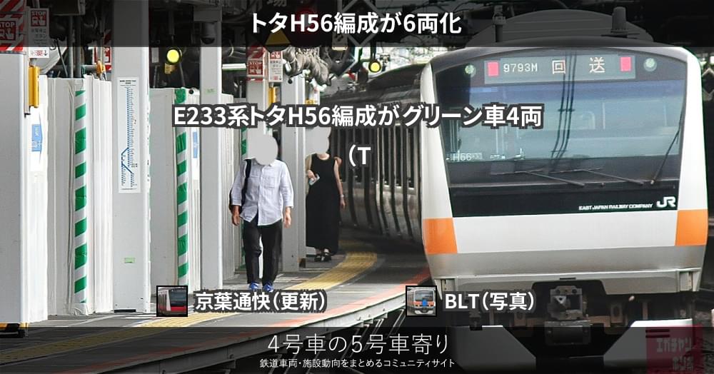 8/21、E233系トタH56編成が6両で、豊田車両センターまで自走で回送されました。前例同様、グリーン車疎開後の返却と見られます。