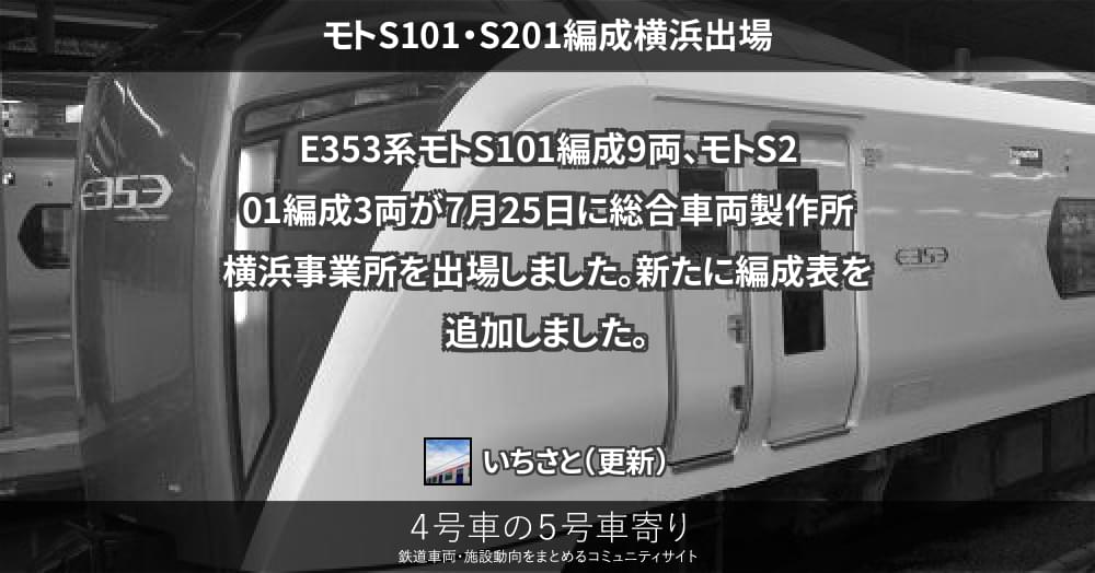 E353系モトS101編成9両、モトS201編成3両が7月25日に総合車両製作所横浜事業所を出場しました。