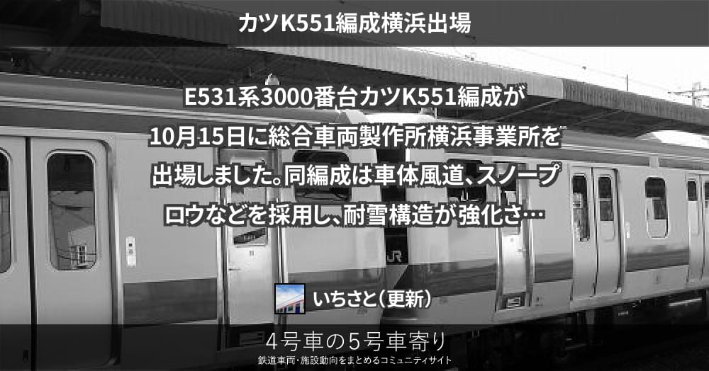 E531系3000番台カツK551編成が10月15日に総合車両製作所横浜事業所を出場しました。