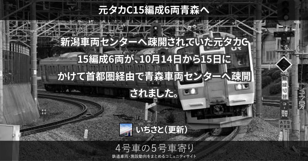 新潟車両センターへ疎開されていた元タカC15編成6両が、10月14日から15日にかけて首都圏経由で青森車両センターへ疎開されました。