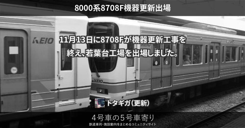 11月13日に8708Fが機器更新工事を終え、若葉台工場を出場しました。