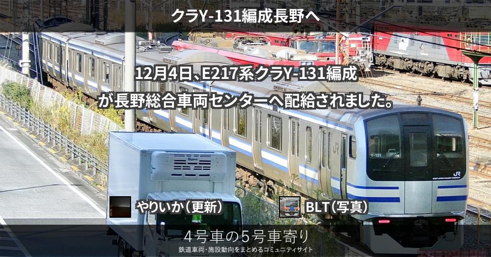 12月4日、E217系クラY-131編成が長野総合車両センターへ配給されました。