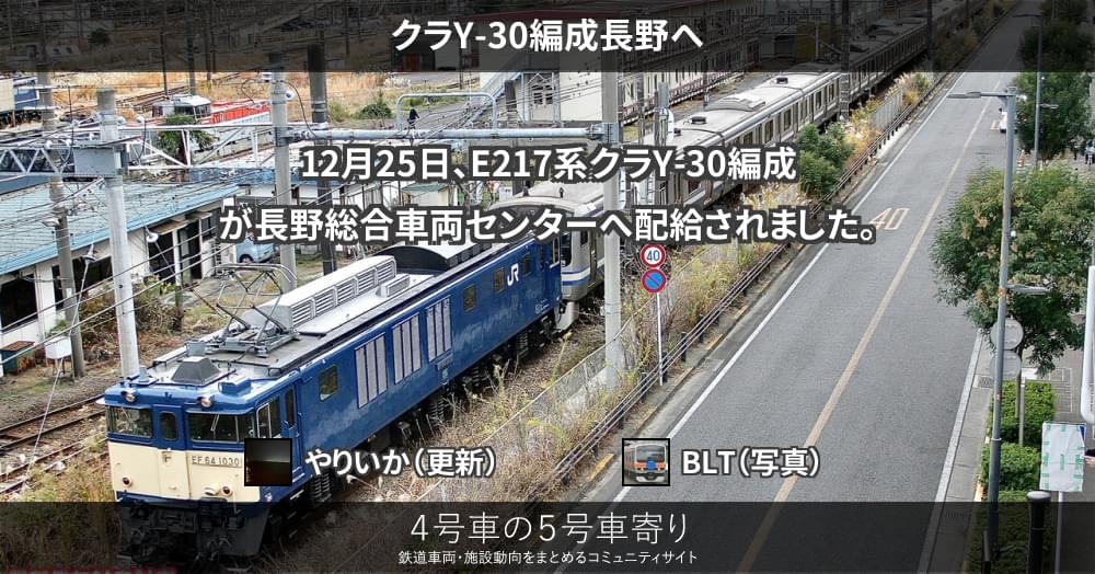 12月25日、E217系クラY-30編成が長野総合車両センターへ配給されました。