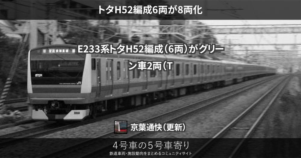 E233系トタH52編成(6両)がグリーン車2両(TsdTsd'27)を組み込み8両化され、1月15日に幕張車両センターから豊田車両センターまで回送されました。