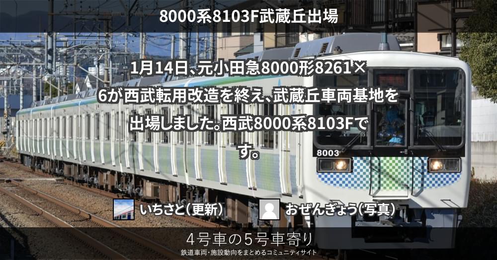 1月14日、「サステナ車両」の第一陣として整備が進められてきた西武8000系8103F(元・小田急8000形8261F)が、試運転を兼ねて武蔵丘車両基地から南入曽車両基地へ回送されました。同編成は2024年6月30日夜間(7月1日未明)に小...
