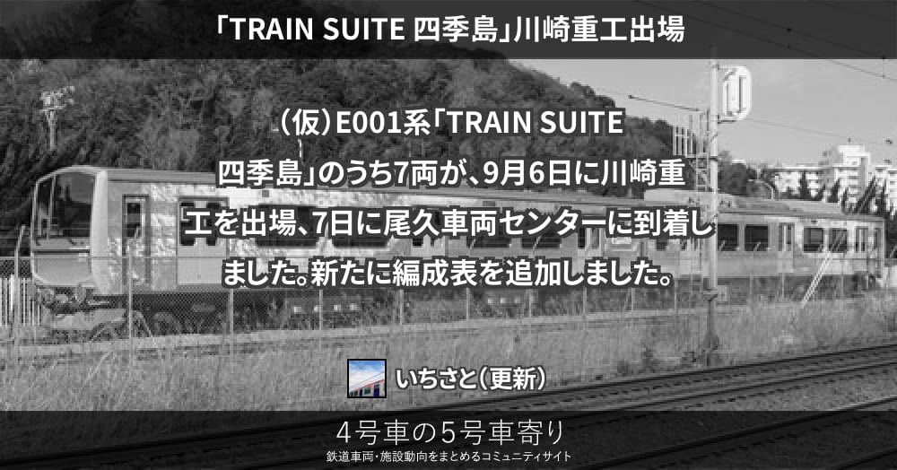 (仮)E001系「TRAIN SUITE 四季島」のうち7両が、9月6日に川崎重工を出場、7日に尾久車両センターに到着しました。