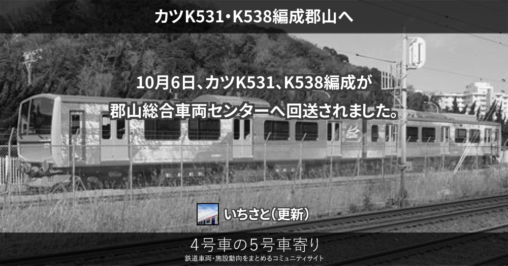 10月6日、カツK531、K538編成が郡山総合車両センターへ回送されました。