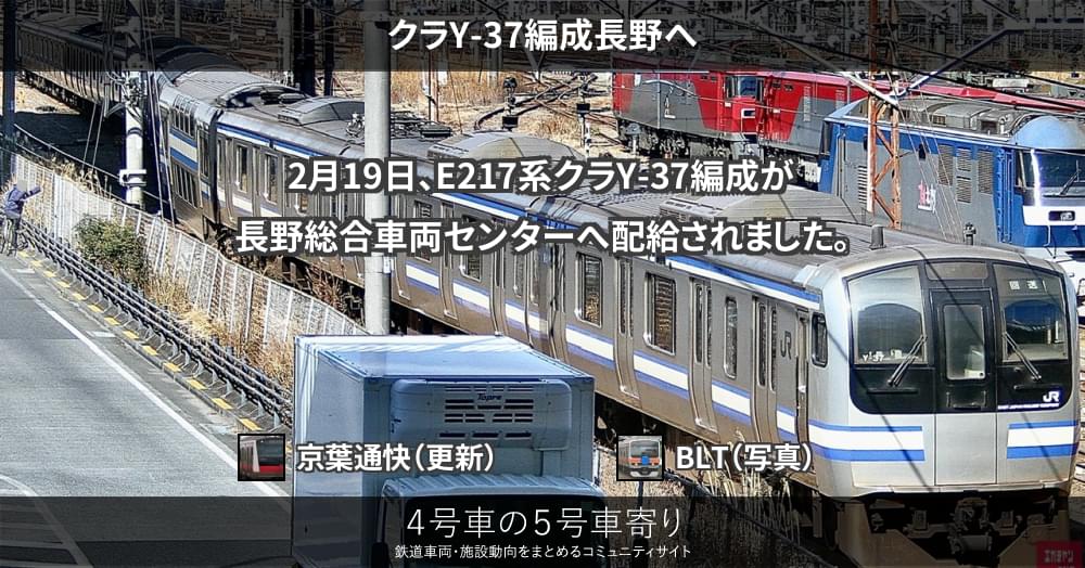 2月19日、E217系クラY-37編成が長野総合車両センターへ配給されました。