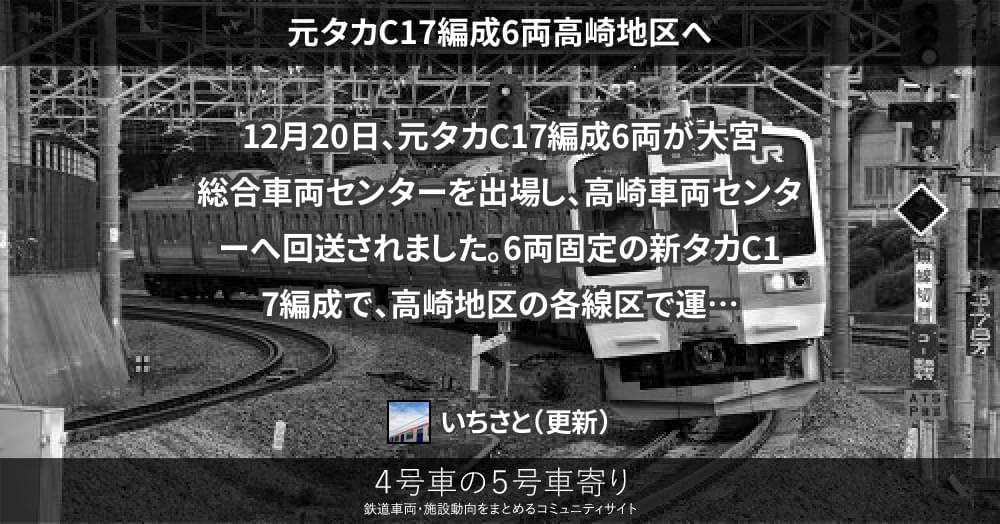 12月20日、元タカC17編成6両が大宮総合車両センターを出場し、高崎車両センターへ回送されました。
