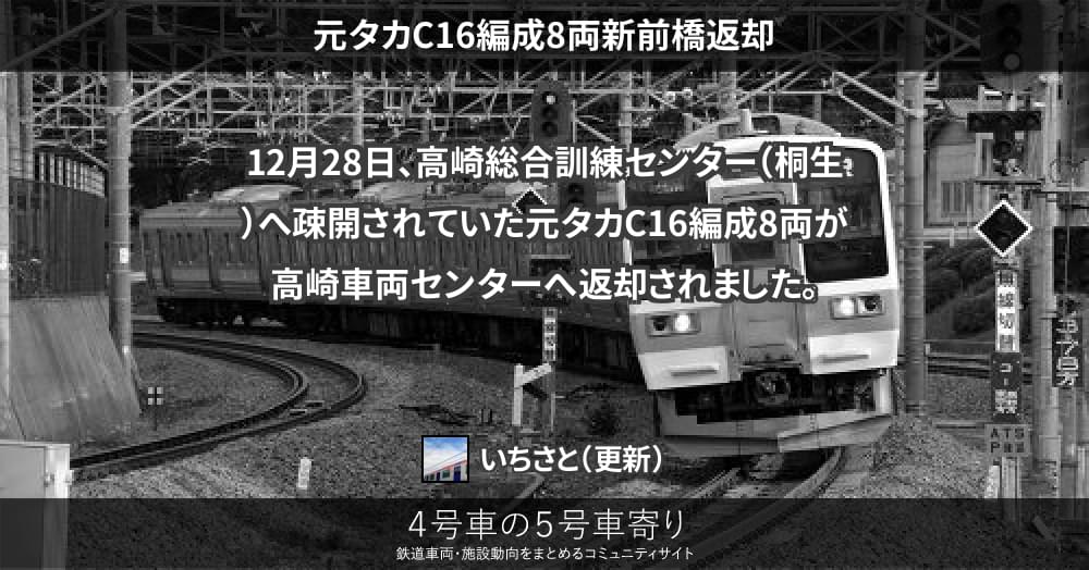 12月28日、高崎総合訓練センター(桐生)へ疎開されていた元タカC16編成8両が高崎車両センターへ返却されました。