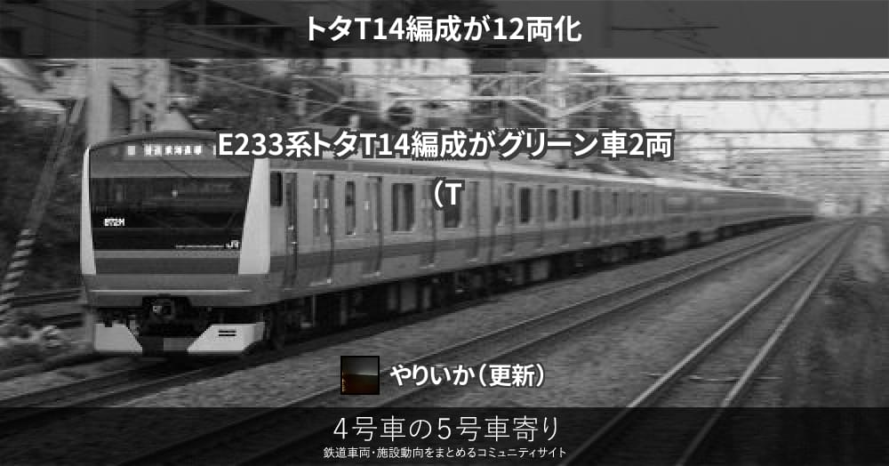 E233系トタT14編成がグリーン車2両(TsdTsd'21)を組み込み12両化され、2月25日より営業運転が確認されました。