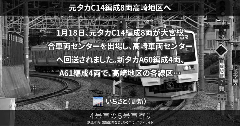 1月18日、元タカC14編成8両が大宮総合車両センターを出場し、高崎車両センターへ回送されました。