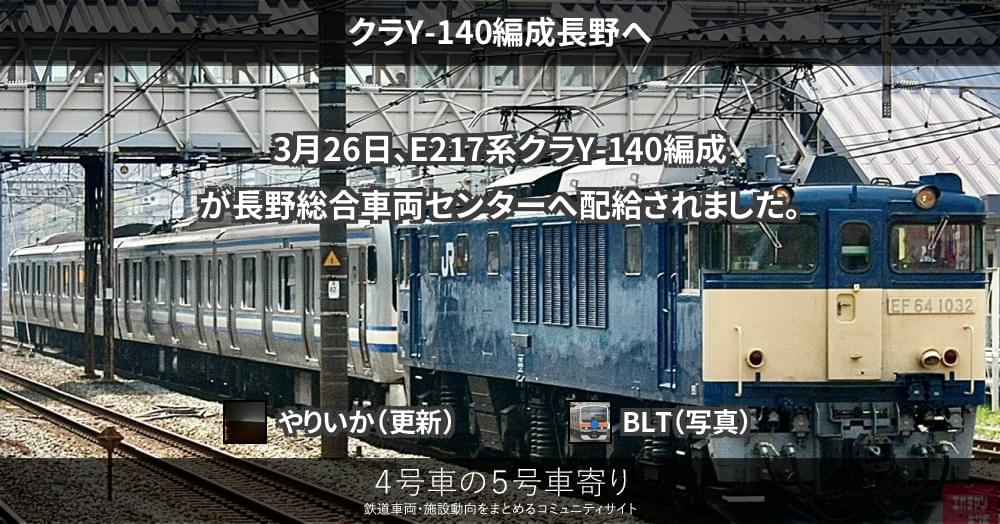 3月26日、E217系クラY-140編成が長野総合車両センターへ配給されました。