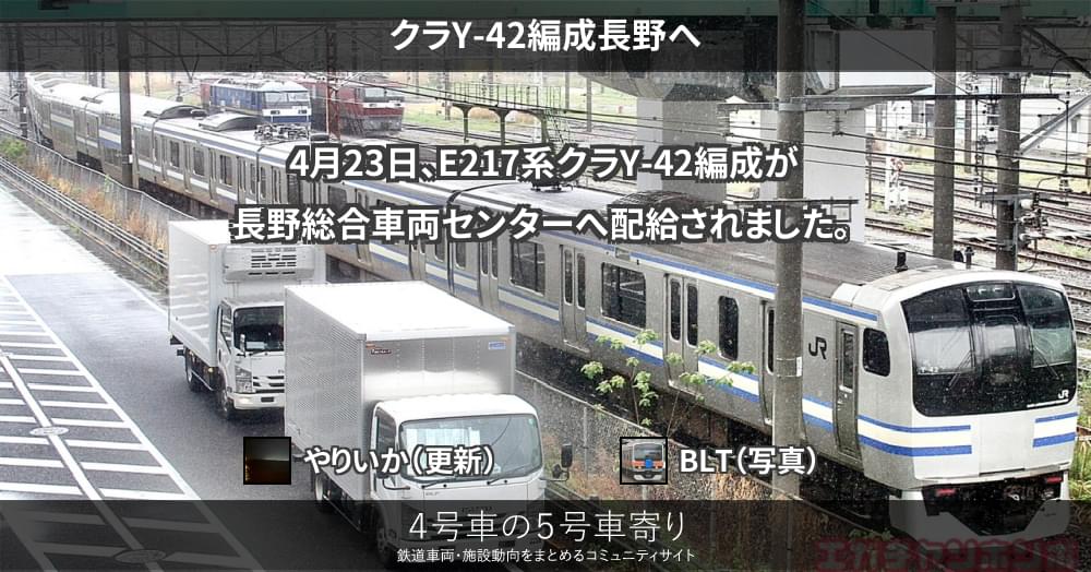 4月23日、E217系クラY-42編成が長野総合車両センターへ配給されました。