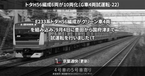 E233系トタH56編成がグリーン車4両(TsdTsd'47~48)を幕張車両センターで切り離し、9月11日に幕張から豊田へ回送されました。