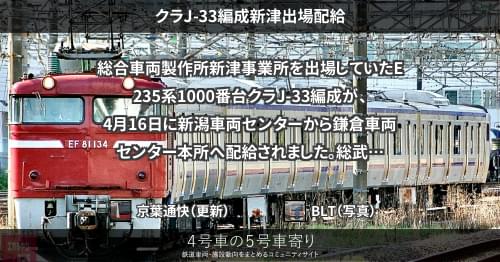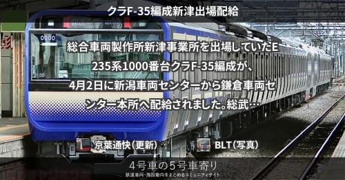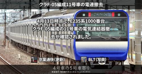 4月13日時点で、E235系1000番台クラF-05編成の11号車の電気連結器撤去が確認されました。