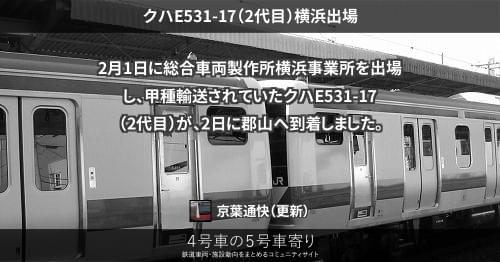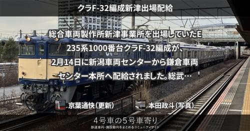 総合車両製作所新津事業所を出場していたE235系1000番台クラJ-30編成が、2月21日に新潟車両センターから鎌倉車両センター本所へ配給されました。