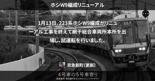 1月17日、223系ホシV15編成がリニューアル工事を終えて後藤総合車両所本所を出場し、試運転を行いました。