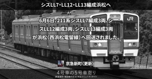 6月11日、211系シスLL4編成3両、シスLL6編成3両が浜松(西浜松電留線)へ回送されました。