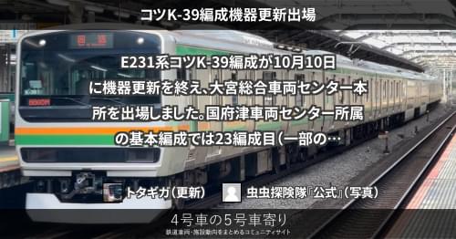 E231系コツK-39編成が10月10日に機器更新を終え、大宮総合車両センター本所を出場しました。