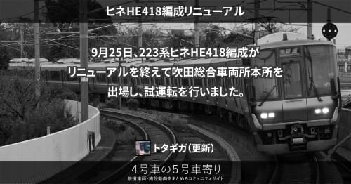 E233系トタT9編成が、長野入場中にトタT40編成に供出していたグリーン車2両(TsdTsd'17)を再度組み込み、9月26日に長野総合車両センターを出場しました。