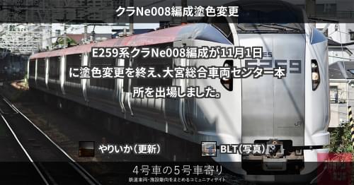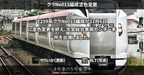 E259系クラNe013編成が11月6日に塗色変更を終え、大宮総合車両センター本所を出場しました。