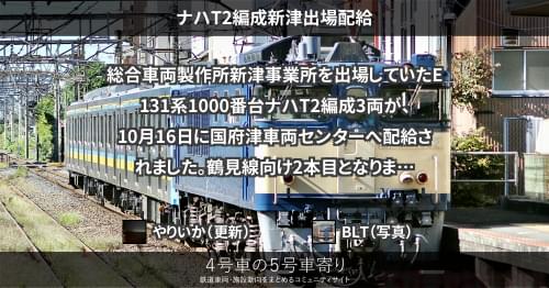 総合車両製作所新津事業所を出場していたE131系1000番台ナハT3編成3両が、10月23日に国府津車両センターへ配給されました。