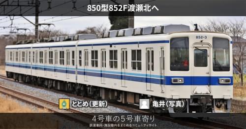 東武 850型852F渡瀬北へ 東武鉄道8000系850型852Fが、3月6日に渡瀬北留置線(北館林解体所)へ回送されました。 https://4gousya.net/forums/post/%e6%9d%b1%e6%ad%a6800%e5%9e%8b852f%e3%81%8c%e5%8c%97%e9%a4%a8%e6%9e%97%e3%81%b8%e8%87%a8%e6%99%82%e5%9b%9e%e9%80%81 2026/03/07 ととめ 東武