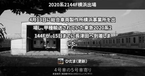 東急 2020系2144F横浜出場 4月13日に総合車両製作所横浜事業所を出場し、甲種輸送されていた東急2020系2144Fが、15日までに長津田へ到着しました。 https://4gousya.net/forums/post/%e6%9d%b1%e6%80%a52144f%e7%b7%8f%e8%bb%8a%e6%a8%aa%e6%b5%9c%e5%87%ba%e5%a0%b4%e7%94%b2%e7%a8%ae 2021/04/15 2021/04/16 ひだま 東急