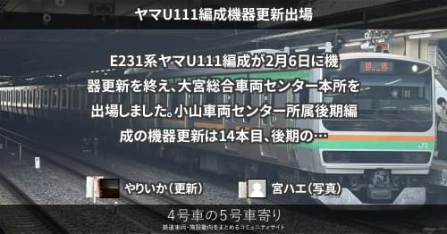 E231系ヤマU111編成が2月6日に機器更新を終え、大宮総合車両センター本所を出場しました。