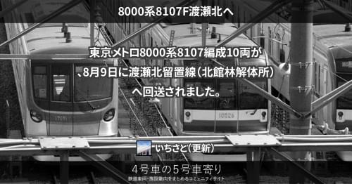 東京メトロ8000系8111編成10両が、9月7日に渡瀬北留置線(北館林解体所)へ回送されました。