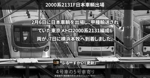 2月27日に日本車輌を出場し、甲種輸送されていた東京メトロ2000系2132編成6両が、28日に横浜本牧へ到着しました。