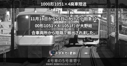 5月20日から30日にかけて小田急1000形1754×6(1754F)が大野総合車両所から陸路で搬出されました。
