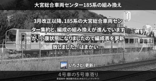 7月23日、大宮総合車両センターに留置されていたサロ185形4両が、長野総合車両センターへ配給されました。