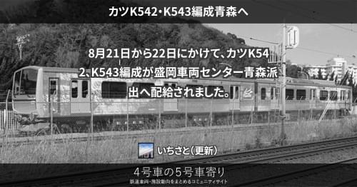 JRの車両その他(東) カツK542・K543編成青森へ 8月21日から22日にかけて、カツK542、K543編成が盛岡車両センター青森派出へ配給されました。 2017/08/21 2017/08/22 いちさと JRの車両その他(東)