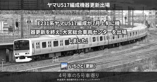 E231系 元トウ508編成10両中央総武緩行線へ 7月20日、元トウ508編成10両が東京総合車両センターを出場し、三鷹車両センターへ回送されました。機器更新済みの新ミツA508編成です。 2017/07/20 いちさと E231系