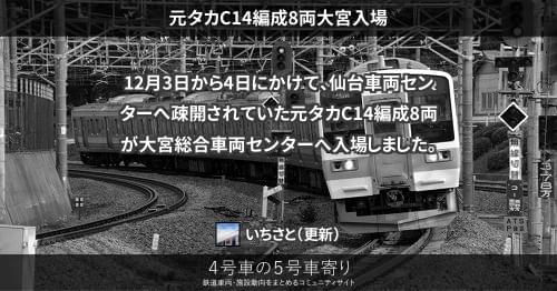211系(東) 元タカC14編成8両大宮入場 12月3日から4日にかけて、仙台車両センターへ疎開されていた元タカC14編成8両が大宮総合車両センターへ入場しました。 2015/12/03 2015/12/05 いちさと 211系(東)