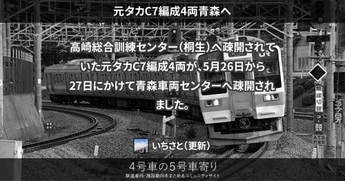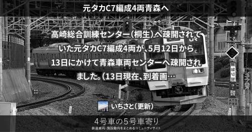 211系(東) 元タカC7編成4両青森へ 高崎総合訓練センター(桐生)へ疎開されていた元タカC7編成4両が、5月12日から13日にかけて青森車両センターへ疎開されました。 (13日現在、到着画像未確認ですが反映致します。) 2015/05/12 いちさと 211系(東)