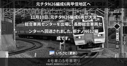 211系(東) 元チタN26編成6両甲信地区へ 11月10日、元チタN26編成6両が大宮総合車両センターを出場し、長野総合車両センターへ回送されました。新ナノN612編成です。 2014/11/10 いちさと 211系(東)
