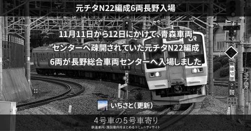 211系(東) 元チタN22編成6両長野入場 11月11日から12日にかけて、青森車両センターへ疎開されていた元チタN22編成6両が長野総合車両センターへ入場しました。 2014/11/11 いちさと 211系(東)